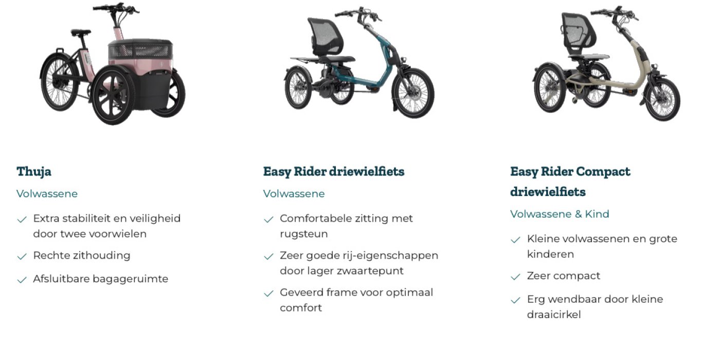 Dat betekent niet dat je direct een driewielfiets nodig hebt, maar het kan wél een uitkomst zijn. Een driewielfiets biedt extra stabiliteit: je hoeft niet meer te balanceren en blijft gewoon stevig staan, ook als je stopt. Dat zorgt voor rust, zekerheid en meer plezier onderweg. Zo kun je blijven genieten van het gevoel van vrijheid dat fietsen geeft.