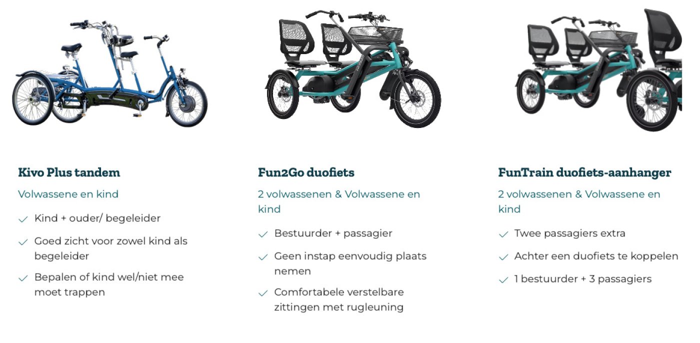 • Duofiets (Fun2Go): waarbij je naast elkaar zit.